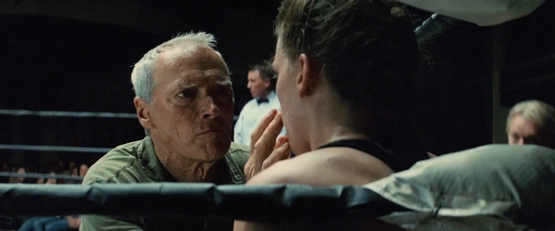 Starring: Clint Eastwood as Frankie Dunn, Hilary Swank as Maggie Fitzgerald, Morgan Freeman as Eddie 'Scrap-Iron' Dupris, Jay Baruchel as Danger Barch, Mike Colter as Big Willie Little, Lucia Rijker as Billie 'The Blue Bear', Brían F. O'Byrne as Father Horvak, Anthony Mackie as Shawrelle Berry, Margo Martindale as Earline Fitzgerald, Riki Lindhome as Mardell Fitzgerald, Michael Peña as Omar, Benito Martinez as Billie's Manager, Bruce MacVittie as Mickey Mack, David Powledge as Counterman at Diner, Joe D'Angerio as Cut Man, Marcus Chait as J.D. Fitzgerald, Tom McCleister as Lawyer, Erica Grant as Nurse, Naveen as Pakistani, Morgan Eastwood as Little Girl in Truck, Jamison Yang as Paramedic, Susan Krebs as Rehab Nurse, V.J. Foster as Ref #3, Steven M. Porter as Ref #6, Ming Lo as Rehab Doctor, Miguel Pérez as Restaurant Owner, Jim Cantafio as Ring Doctor, Ted Grossman as Ring Doctor, Ned Eisenberg as Sally Mendoza, Marco Rodríguez as Second at Vegas Fight, Mark Thomason as Radio Commentator, Brian T. Finney as Irish Fan, Spice Williams-Crosby as Irish Fan, Kim Strauss as Irish Fan, Kirsten Berman as Irish Fan, Jimmy Alioto as Las Vegas Fight Fan (uncredited), Jason Williams as Las Vegas Fight Fan (uncredited), Nina Avetisova as VIP Girl (uncredited), Michael Bentt as Boxer (uncredited), Bruce Gerard Brown Jr. as Boxer (uncredited), McKay Stewart as Sparring Boxer (uncredited), Jude Ciccolella as Hogan (uncredited), Kimberly Estrada as Perez (uncredited), Sean LoGrasso as Fight Fan (uncredited), Maher McClung as Irish Fan (uncredited), Sean O'Kane as Additional Voices (voice) (uncredited), Vladimir Rajčić as Yugoslavian Judge (uncredited), Marty Sammon as Ref #5, Robert Maron as Irish Fan #4, Rosine 'Ace' Hatem as Maggie's First Opponent (uncredited), Boni Yanagisawa as Maggie's Third Opponent (uncredited), Christina Cox as Maggie's Fourth Opponent (uncredited), Mimi Lesseos as Billie's Opponent (uncredited), Bridgett Riley as Maggie's Second Opponent (uncredited)